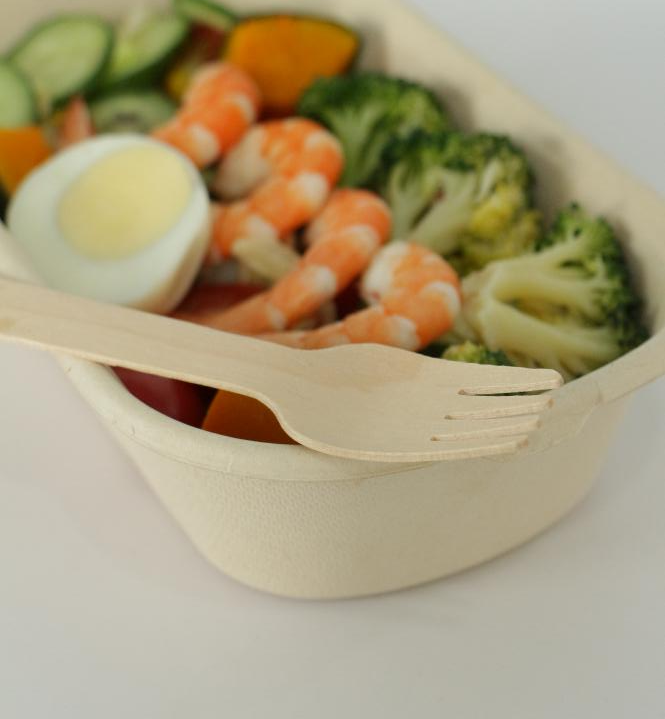 Plant-based plastics can deform with hot foods; wood stays firm.